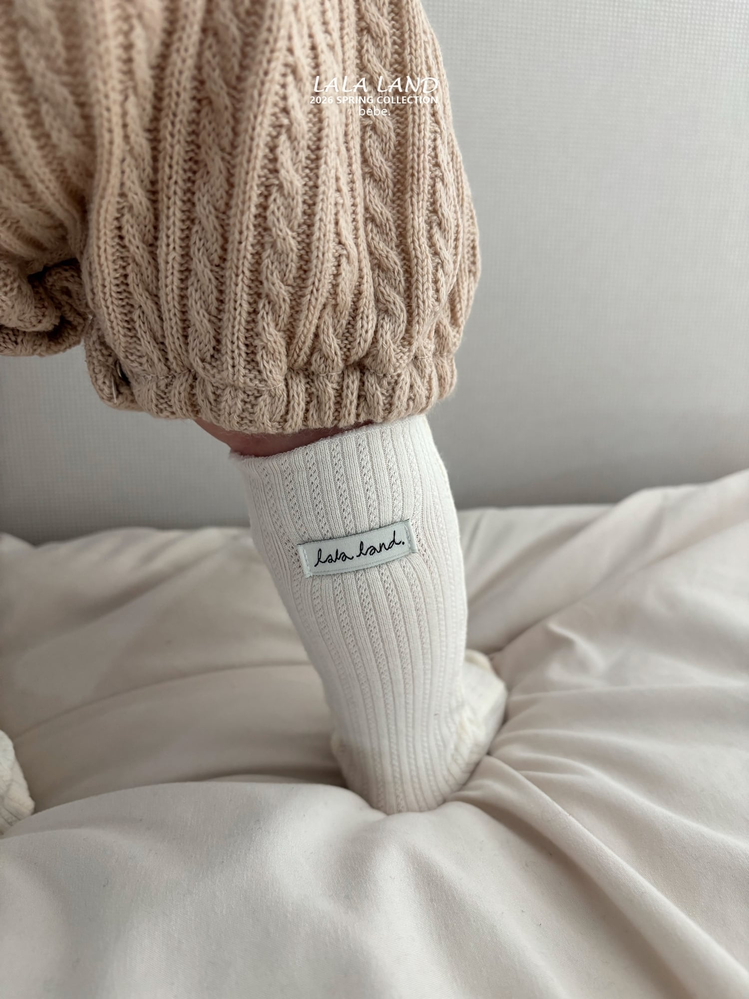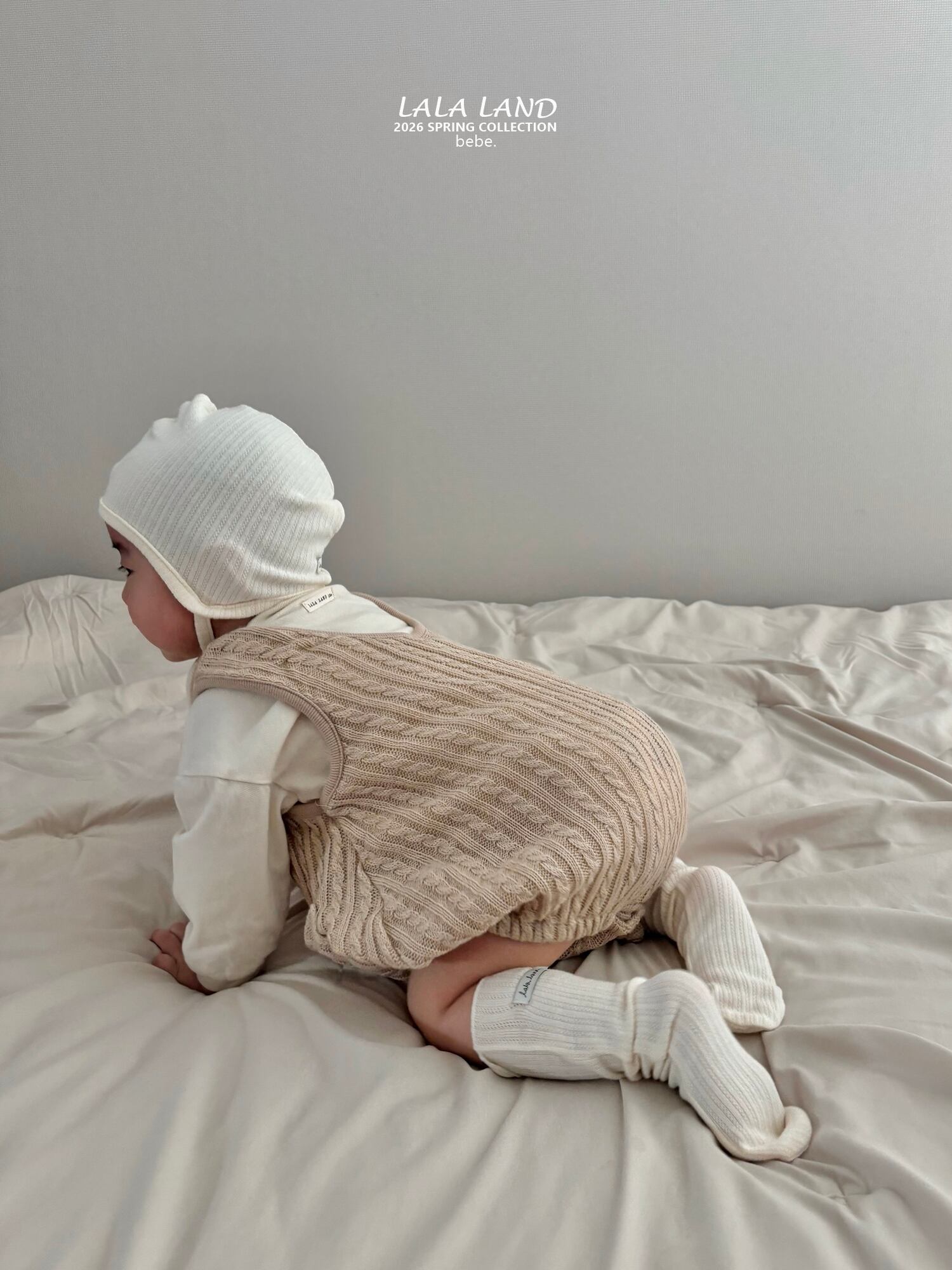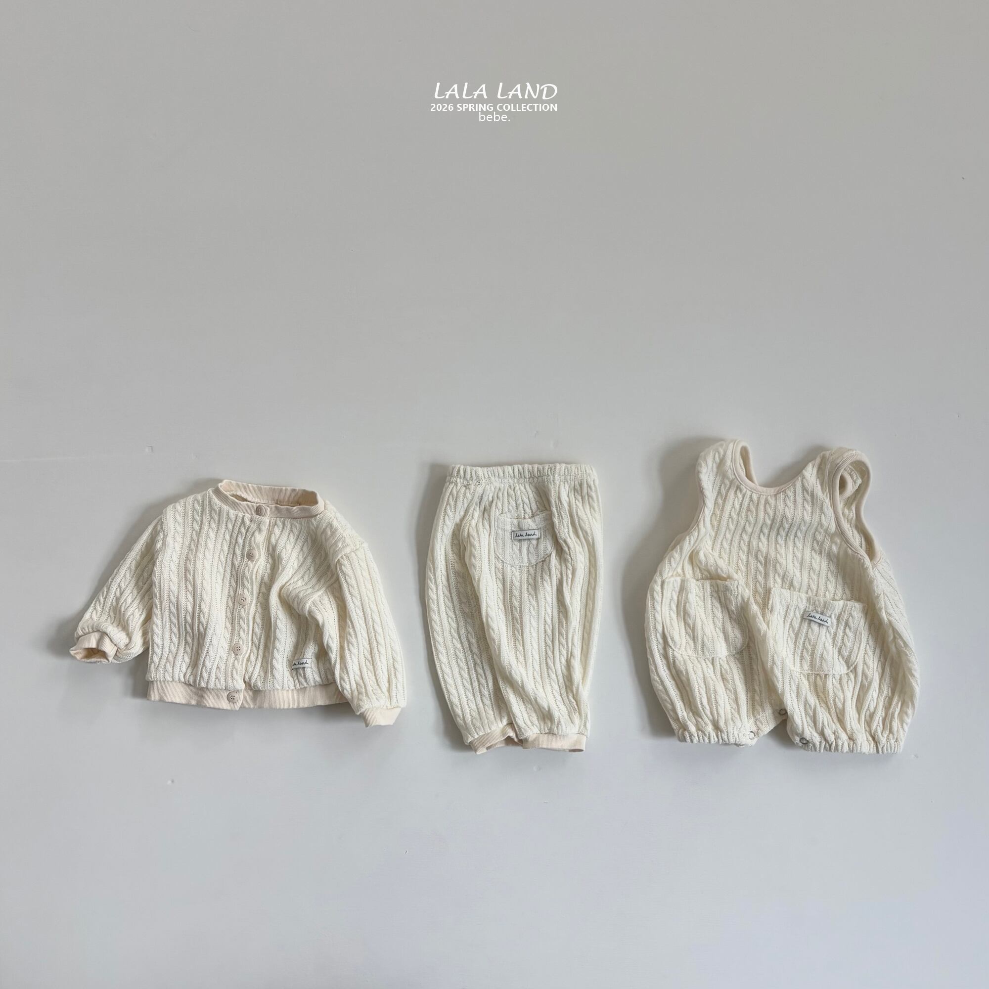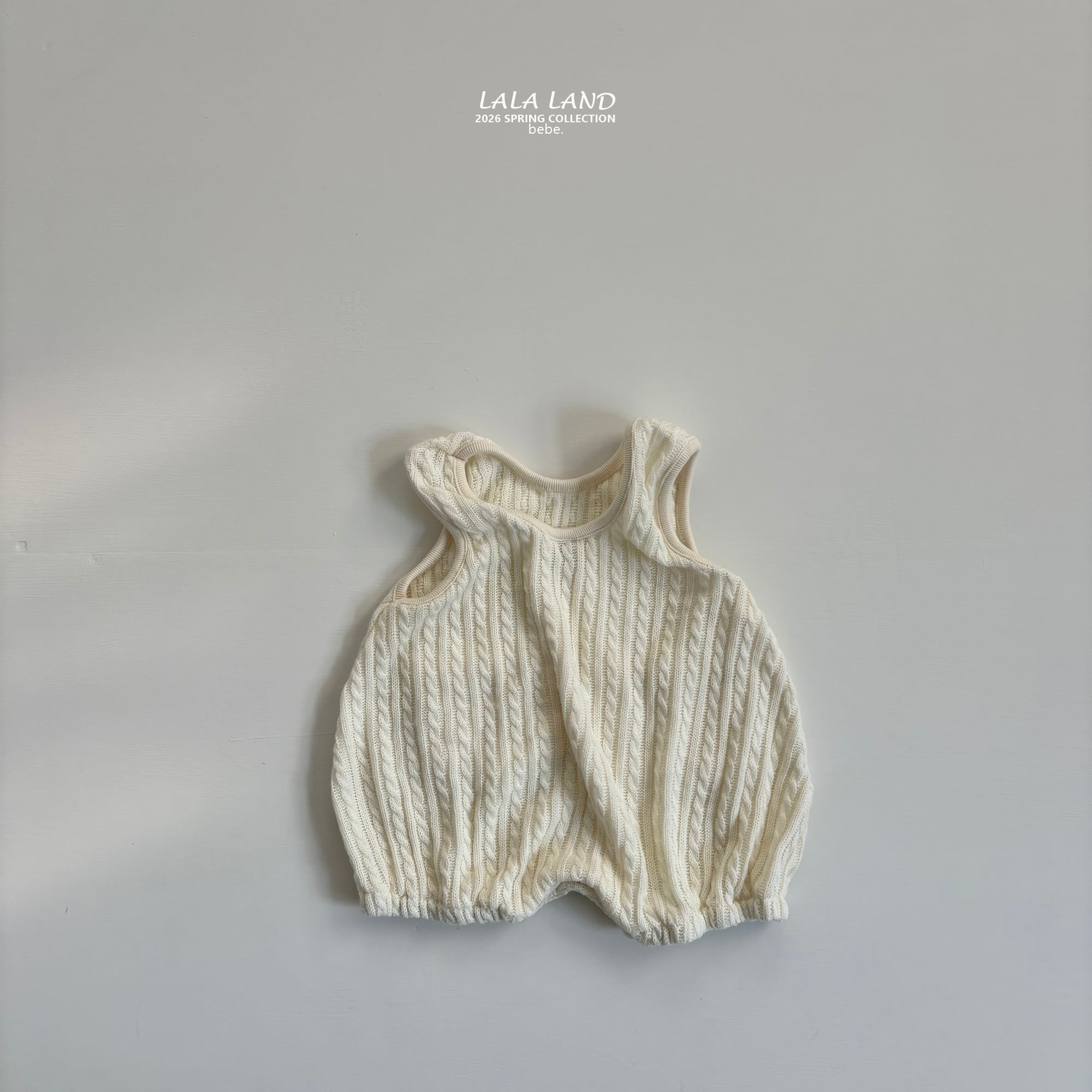 ふんわりとしたシルエットにケーブルデザインが可愛いロンパース。